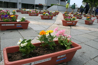 毎年、3年生と5年生が参加させていただいております。千代台公園内の落ち葉が堆肥にリサイクルされることを熱帯植物園の鈴木さんに教えていただきました。土づくりを学びながら、子どもたちはプランターに花を植えました。素敵な体験をさせていただき、ありがとうございました。街路に飾られる花も楽しみです。