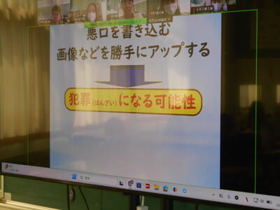 今回は、北海道警察本部少年課の方を講師としてネット回線を通じての開催です。