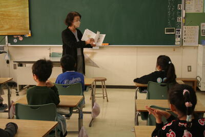 11月7日に読書月間の取組の一環として、読み語りの会「花音」さんを迎えて、読み聞かせを行なっていただきました。各学年に合わせたテーマ設定により選び抜かれた絵本を全学級児童へ読んでくださいました。一部紹介すると、1年生では世界の昔話を中心に、6年生のテーマは「自分の気持ち」などです。子どもたちの心に残り、本や物語への興味を広げていただける素敵な時間となりました。どうもありがとうございました。